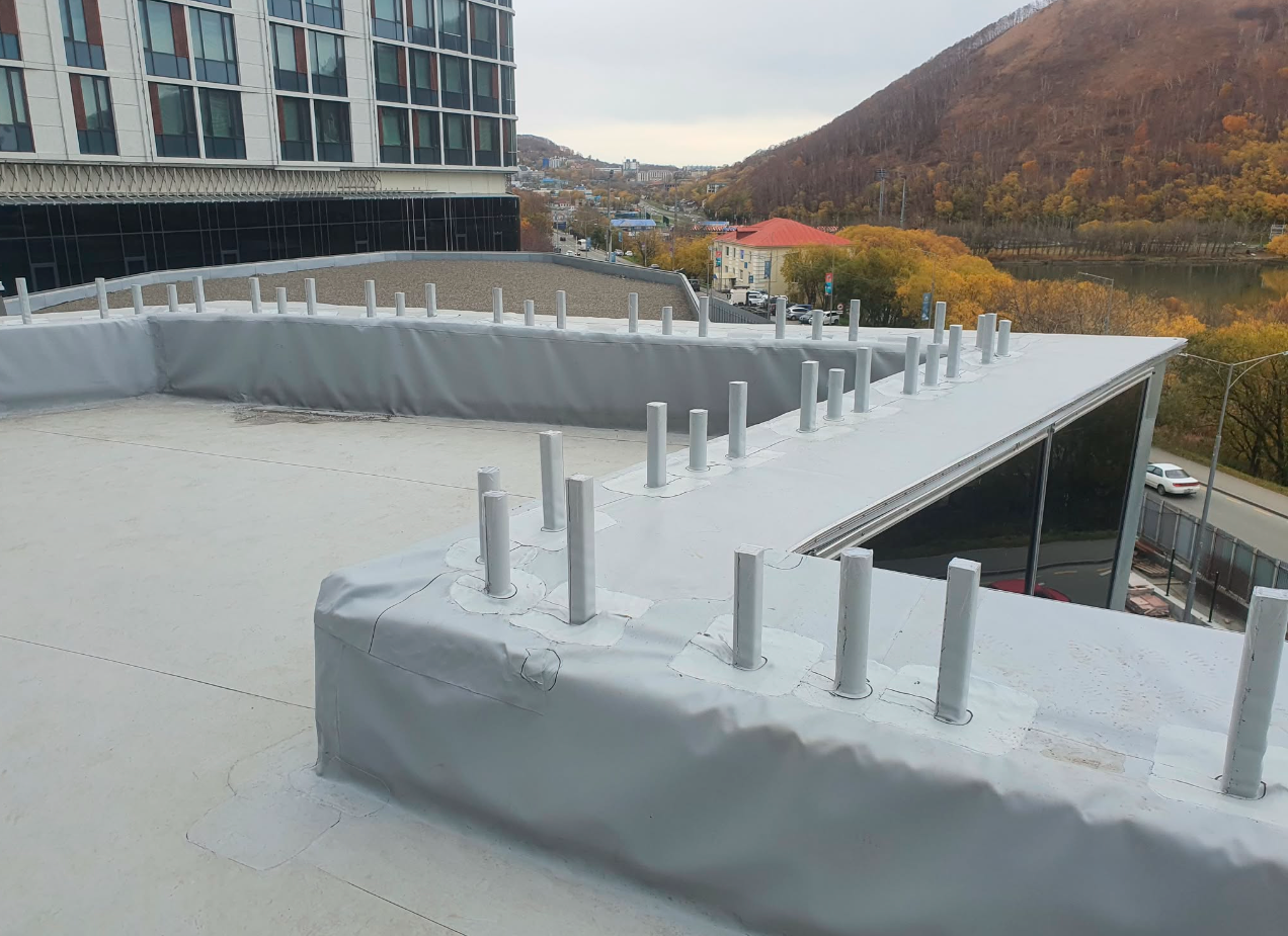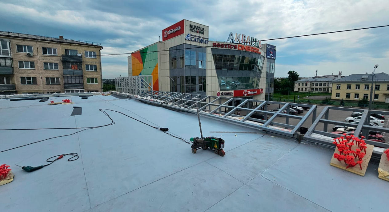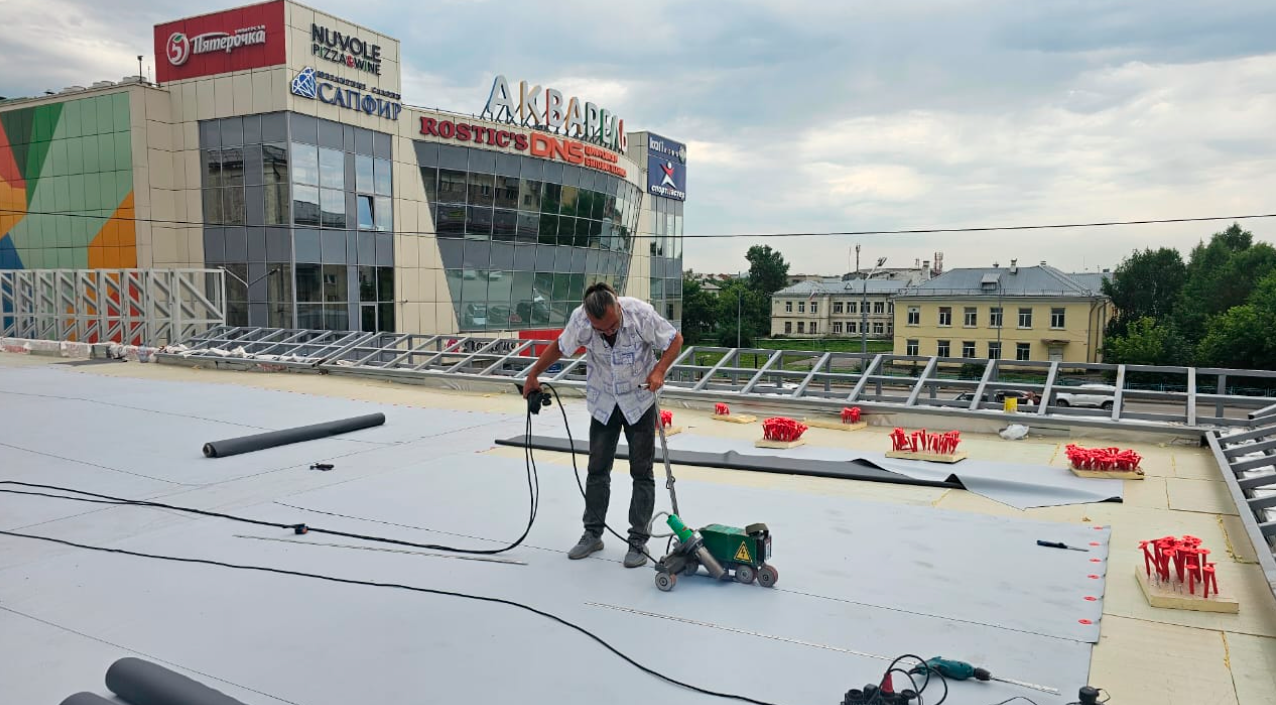 Устройство кровли ТЦ с использованием ПВХ мембраны Plastfoil 1.2 мм