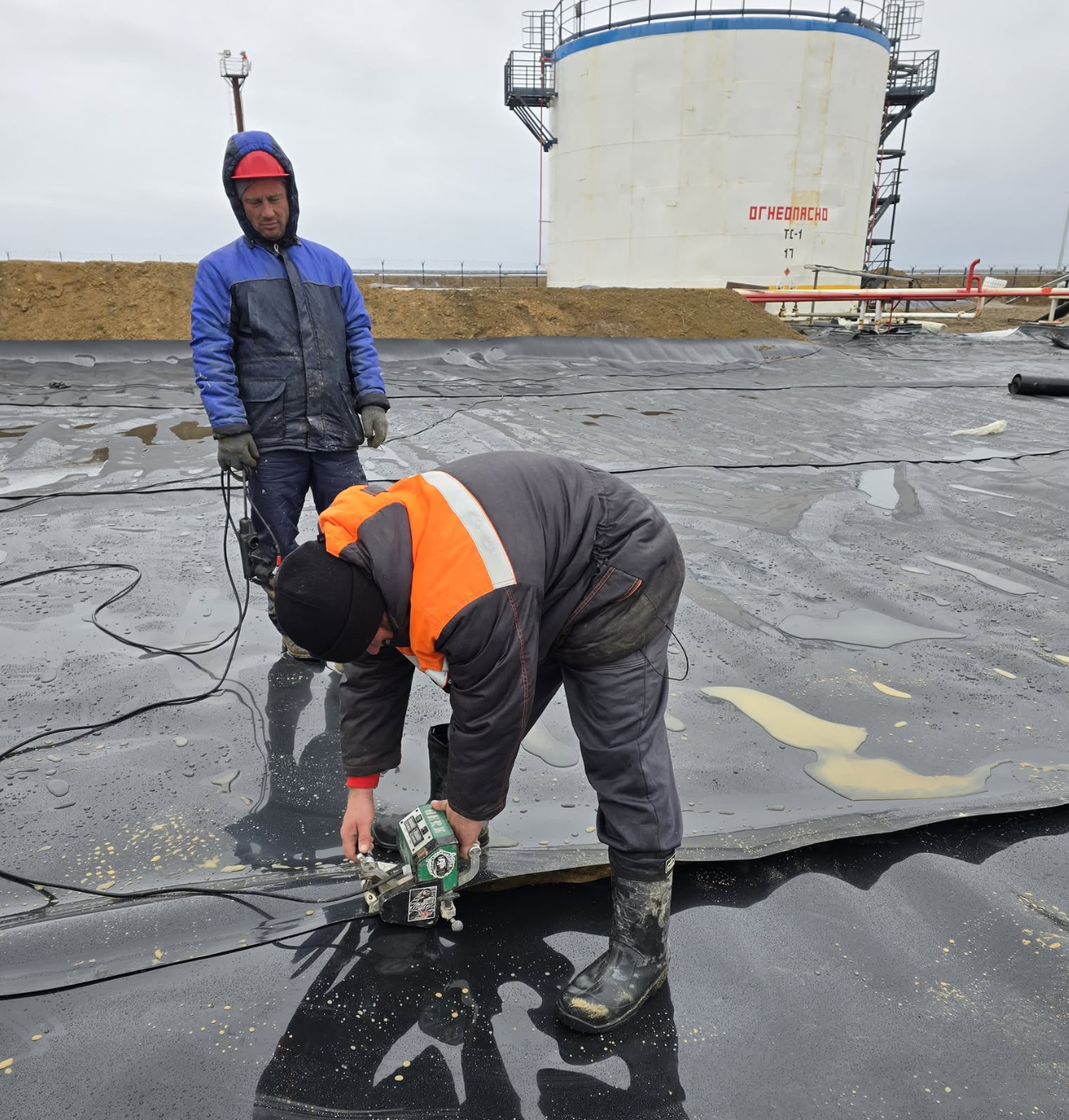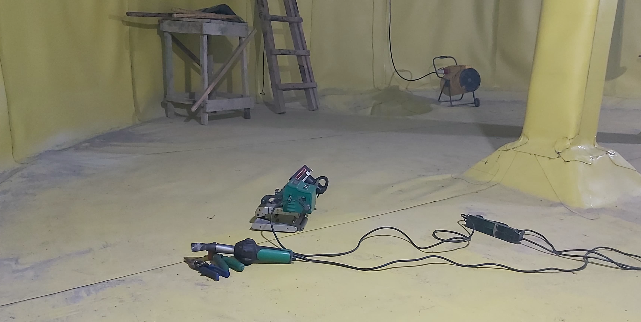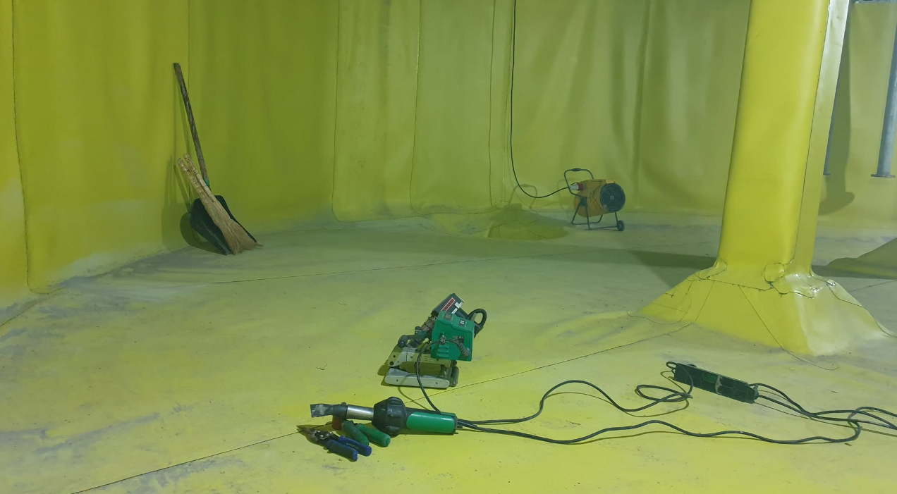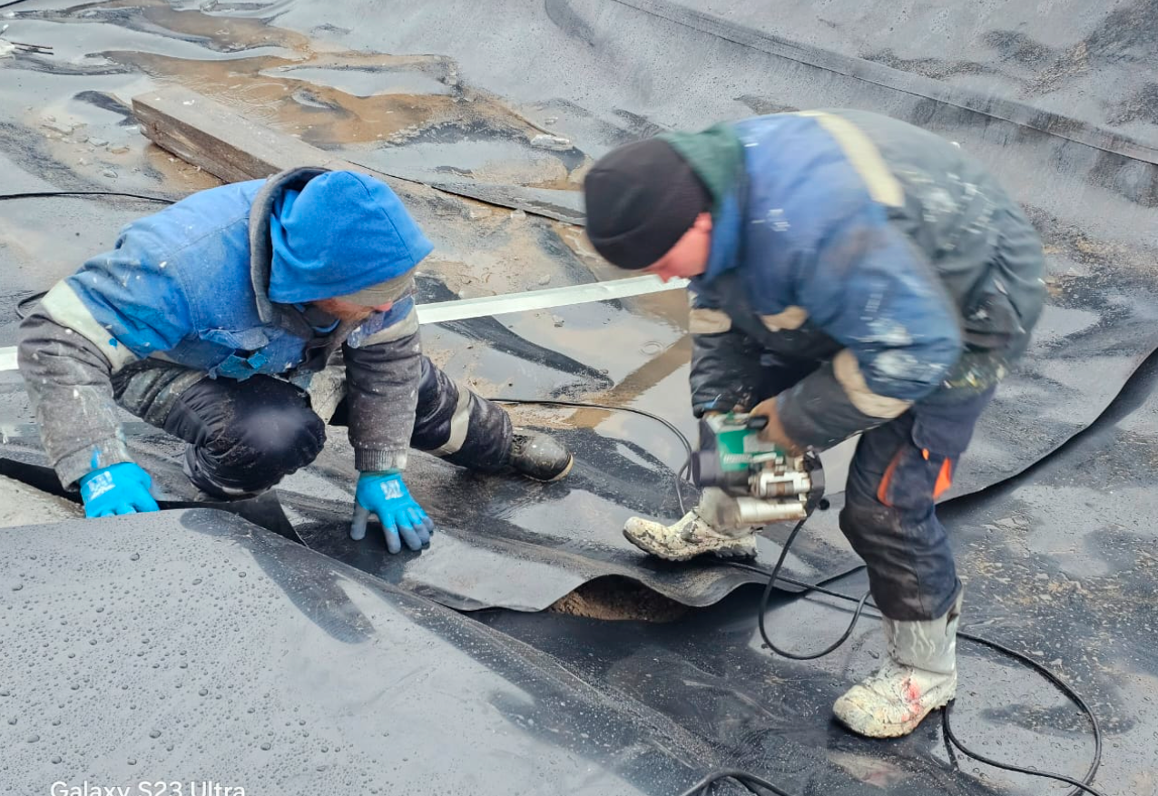 Устройство гидроизоляции пожарных резервуаров ПВХ мембраной Пластфойл ГЕО 2,0 мм