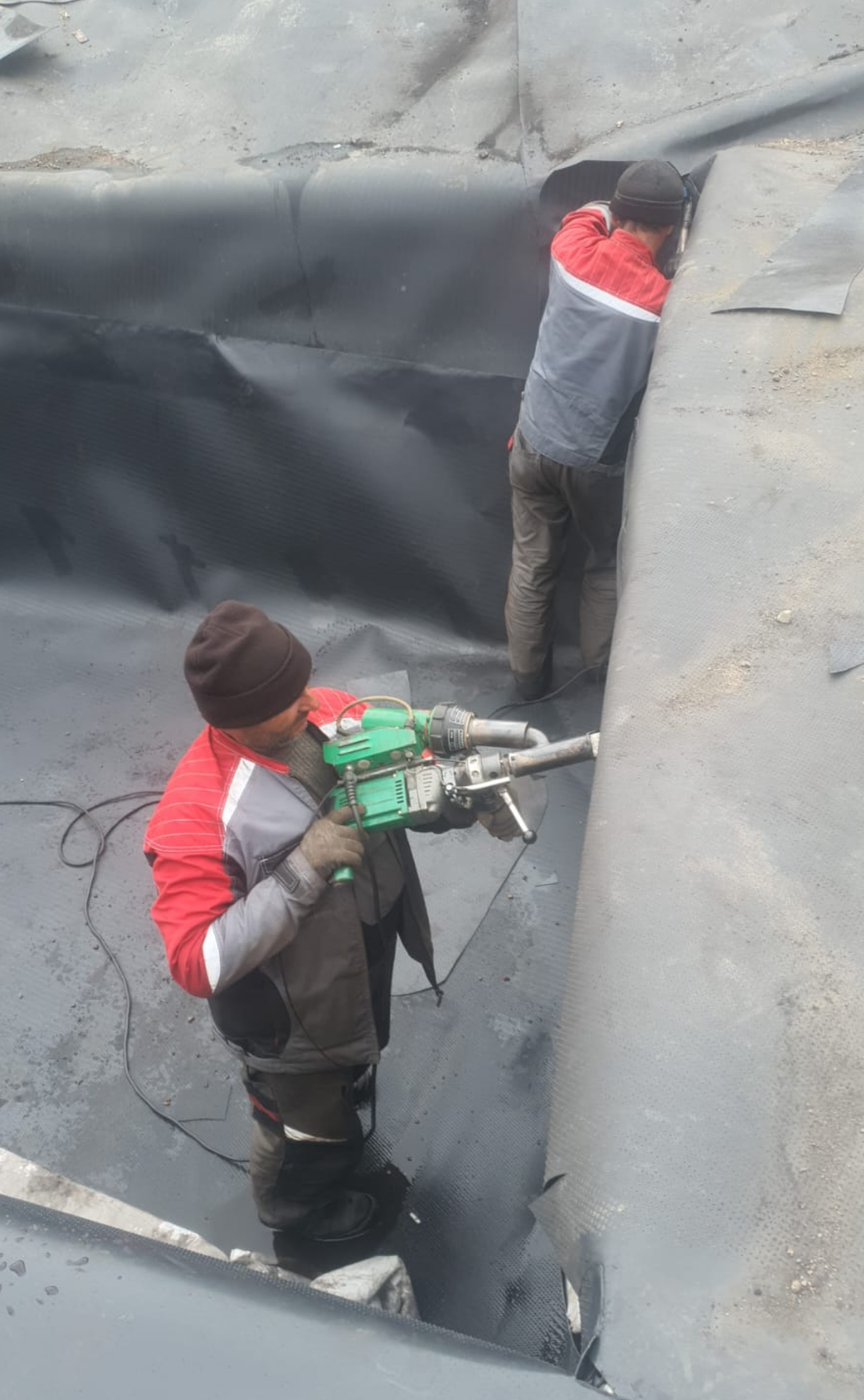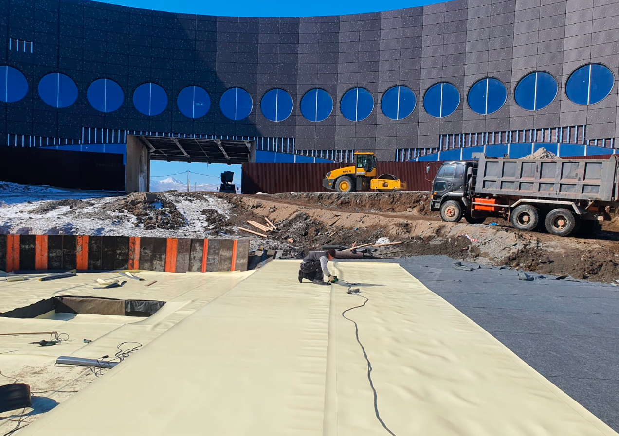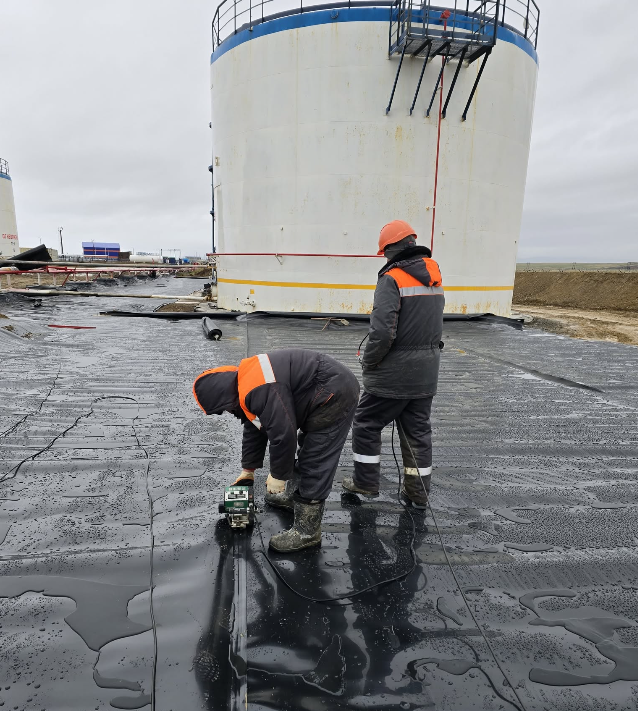 Устройство гидроизоляции пожарных резервуаров ПВХ мембраной Пластфойл ГЕО 2,0 мм