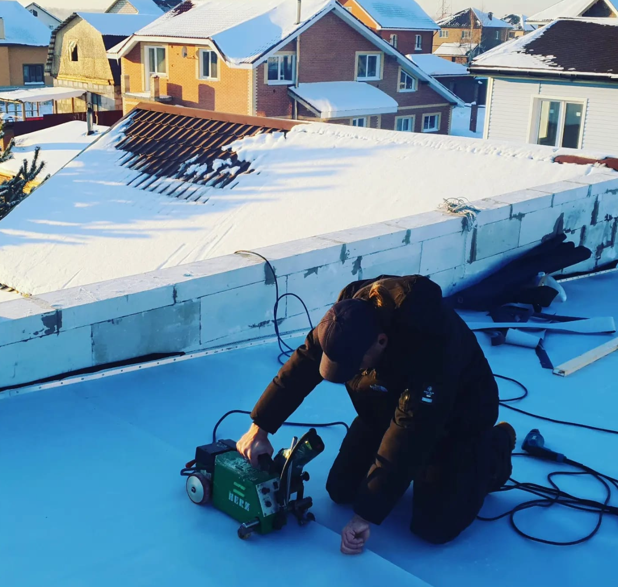Новосибирск. Малоэтажное домостроение. Плоские кровли из ПВХ мембран